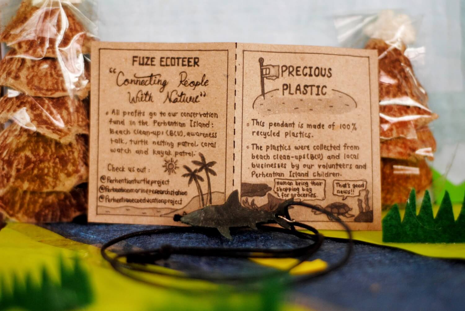Check out these awesome precious plastic shark necklaces. They are made from 100% recycled plastics found during beach clean and collected directly from resorts, dive centres and restaurants. Each pendant contains approximately 2g of plastic.